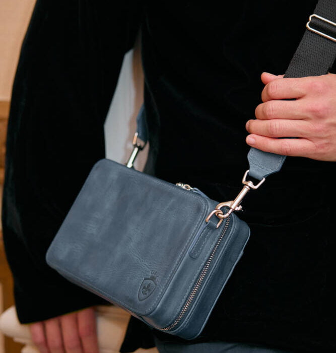 Rent the Crossbody Travel Cigar Carrier, a luxurious and practical solution for cigar enthusiasts on the move. Designed for travel, special events, or casual outings, this hands-free carrier offers unmatched portability and premium protection for your cigars. Perfect for weddings, business trips, or as a thoughtful rental gift option.